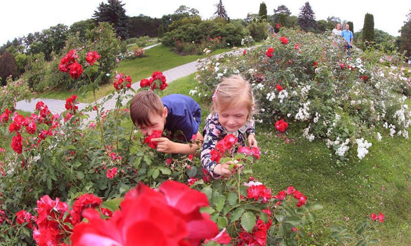 Children view the flowers at a botanical garden in Minsk, Belarus, July 11, 2020. (Photo by Henadz Zhinkov/Xinhua)