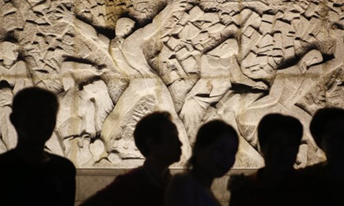 Visitors gaze upon a monument to the Tangshan earthquake in Tangshan, Hebei Province, July 27. Photo: Li Hao/GT