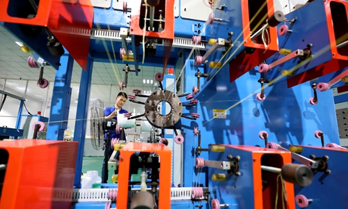 An employee assembles fiber optic cable products at a factory in Huaibei, East China’s Anhui Province. With the arrival of the 5G era, enterprises throughout the city have taken the opportunity to speed up the production of optic cable products. The annual output for optic cable products is approximately 100 million yuan ($14.15 million) for the city. Photo: CNSphoto