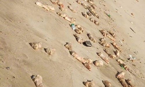 Some scattered pig feet were first spotted at 11 pm on Friday but more, along with some unknown animal parts, were found along the one-kilometer-long beach on Saturday.