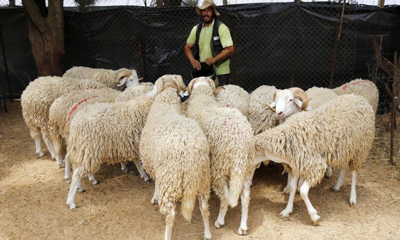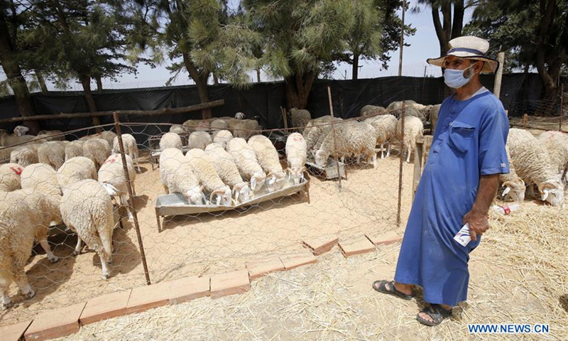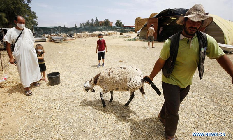 A man works at an animal stall ahead of Eid al-Adha in Algiers, Algeria, on July 12, 2020. (Xinhua)