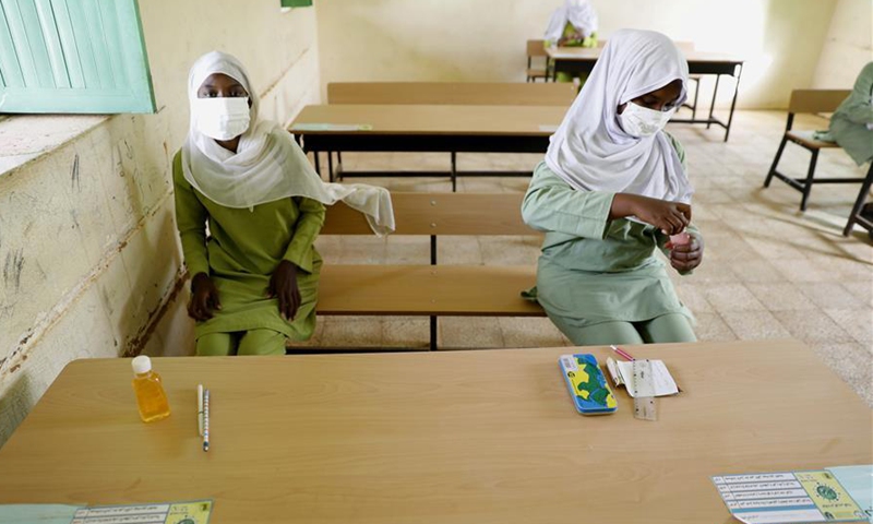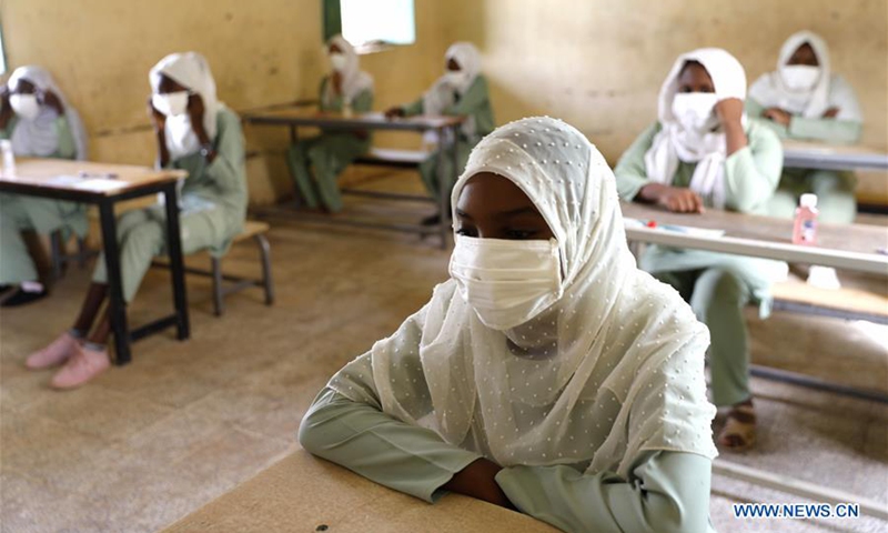 Students sit for Basic School Certificate Examinations in Khartoum, Sudan, July 12, 2020. (Xinhua/Mohamed Khidir)