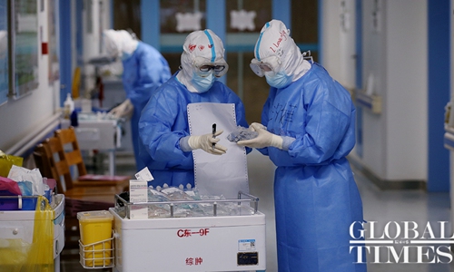 Medics work at the Zhongfa Xincheng branch of the Wuhan Tongji Hospital on February 14. Photo: Cui Meng/GT