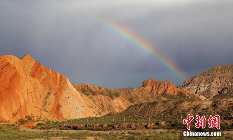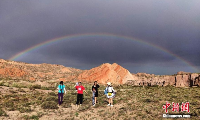Photo shows a rainbow arching across the Alien Valley Star Geological Park in Zhangye, Northwest China's Gansu Province. A geological known as "Alien Valley" in Zhangye, Northwest China's Gansu Province, is gaining popularity for its spectacular landforms. (Photo/China News Service)