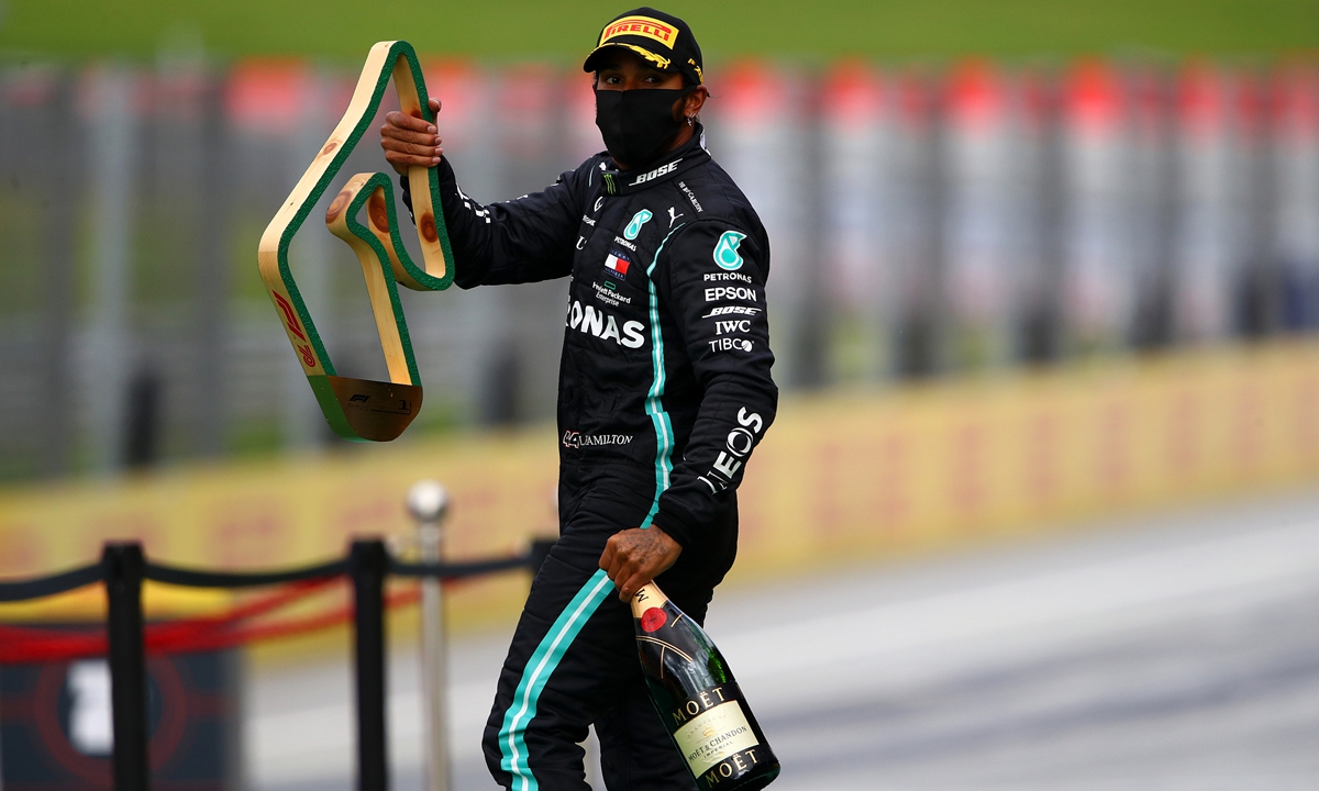 Lewis Hamilton celebrates after winning the Grand Prix of Styria on Sunday. Photo: IC