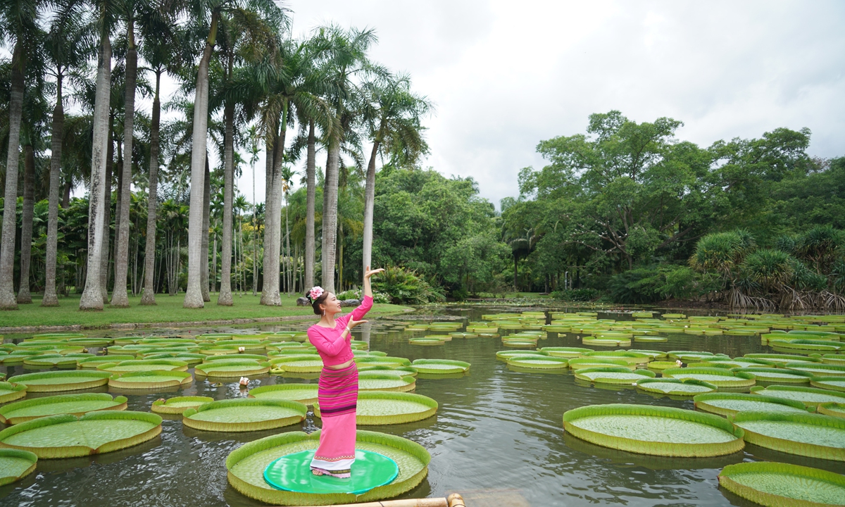 A woman dances gracefully on a Victoria water lily in a botanical garden in Xishuangbanna Dai Autonomous Prefecture, Southwest China's Yunnan Province. The waterlily has a diameter of two meters and can carry a weight of up to 70 kilograms. Photo: IC