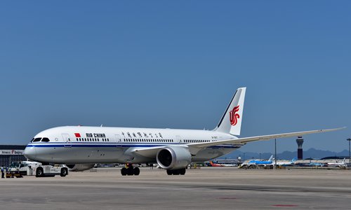 A Boeing 787-9 passenger jet of Air China is towed at Beijing Capital International Airport. File photo: IC
