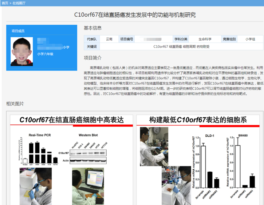 The work of the pupil focuses on a colorectal cancer related gene study, and won third prize at a prestigious annual event that attracts around 10 million young contestants nationwide every year.