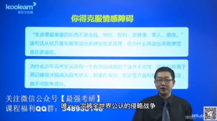 The remarks were made by Wang Cheng, a part-time contracted history teacher tutoring postgraduate entrance examinations at New Oriental School in Beijing.