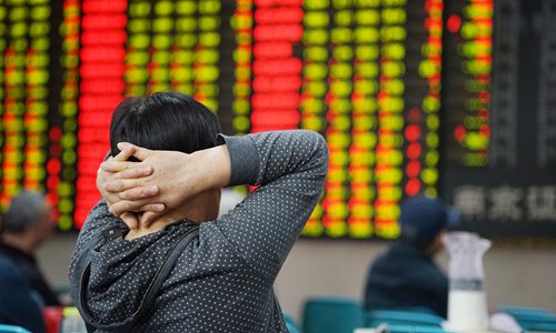 An individual investor watches stock prices at a stock exchange in Nanjing, East China's Jiangsu Province on Monday. Photo: VCG