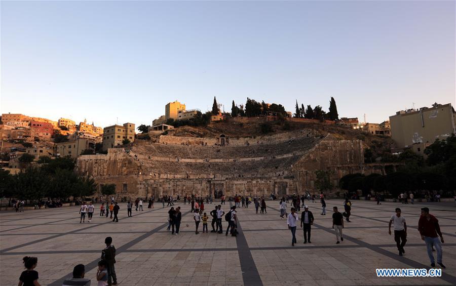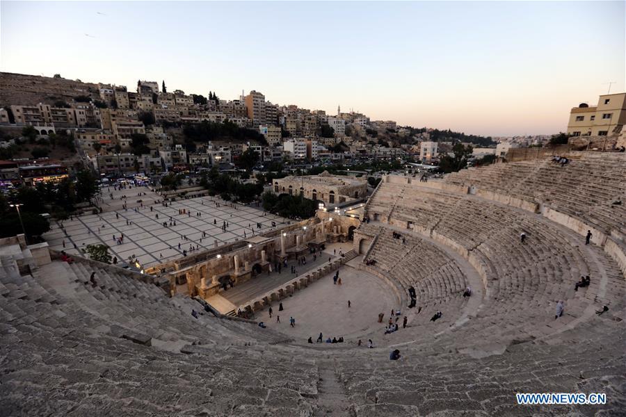 Tourists visit the historical Roman Theater of Amman, Jordan, on July 16, 2020. (Photo by Mohammad Abu Ghosh/Xinhua)