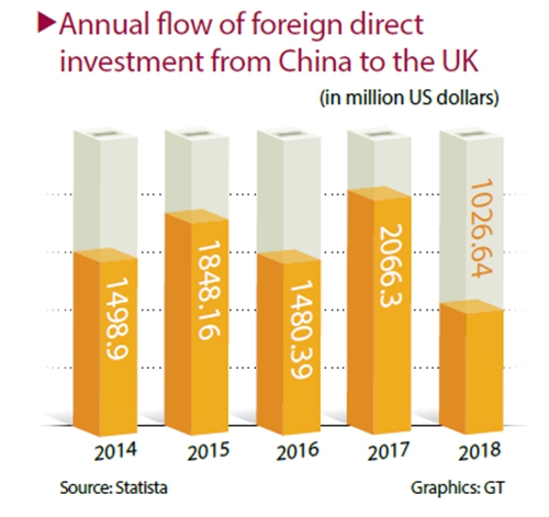 Apart from the massive Chinese investment, China was the UK's second-largest trading partner after the US in 2018, with two-way trade reaching 68.3 billion pounds ($85.78 billion), according to UK official data. Chinese students also contribute at least 1.7 billion pounds a year to UK universities, according to the UK's National Institute of Economic and Social Research, which warned a trade conflict with China could result in a 90 percent fall in UK trade and a 0.75 percent drop in GDP.