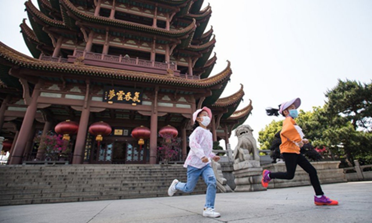 Tourists visit the Yellow Crane Tower in Wuhan, central China's Hubei Province Photo: Xinhua