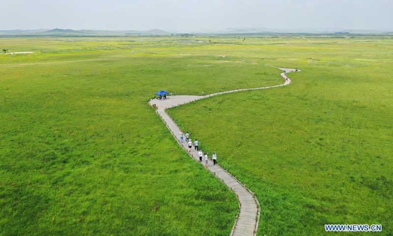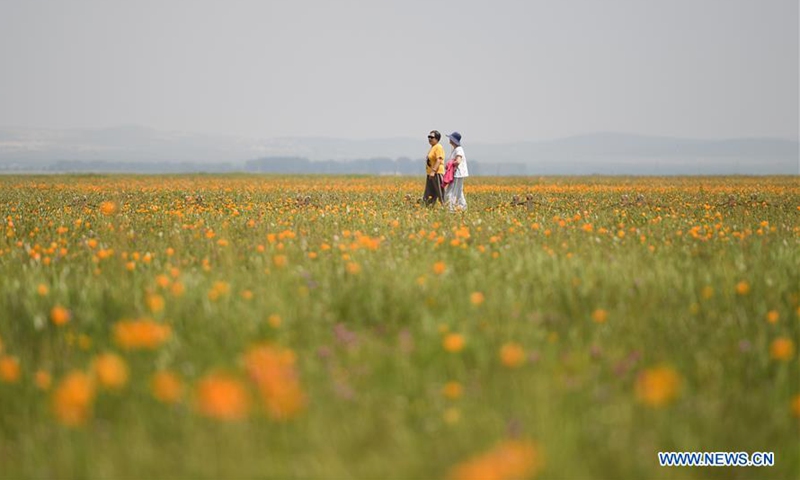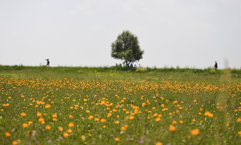 Photo taken on July 22, 2020 shows people visiting the Jinlianchuan Pasture in Zhenglan Banner of Xilingol League, north China's Inner Mongolia Autonomous Region. (Xinhua/Liu Lei)