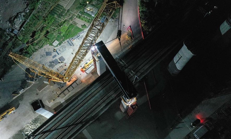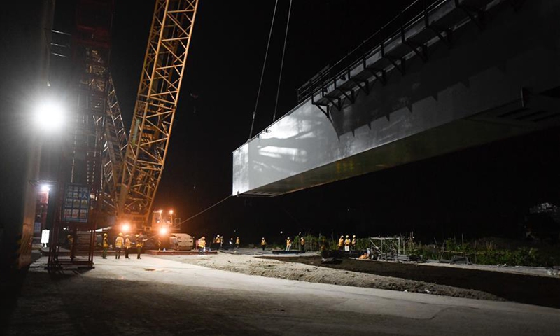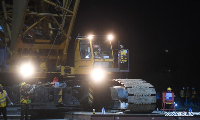 Constructors work at the construction site of the Hangzhou-Shaoxing-Taizhou high-speed railway in east China's Zhejiang Province, July 23, 2020. The railway will start from the city of Hangzhou, crossing Shaoxing and ending in Taizhou, all cities in east China's Zhejiang Province. The railway is expected to be put into service at the end of 2021. (Xinhua/Huang Zongzhi)