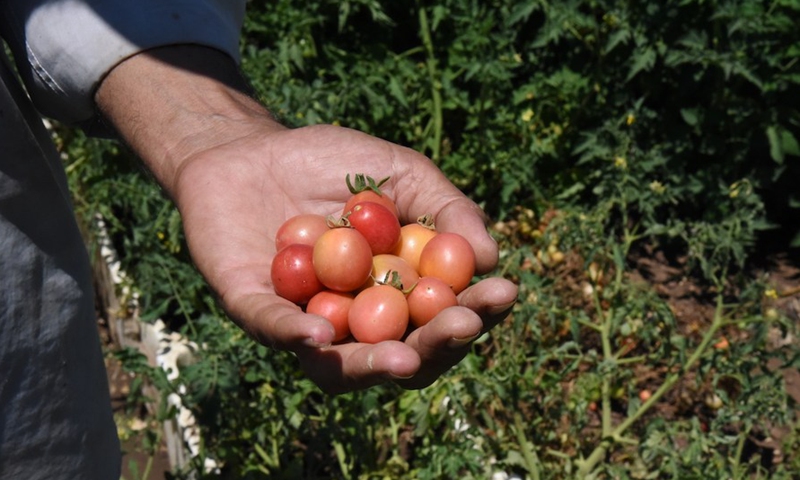 A photo of vegetables planted by Ziad Thabet, a retired man, over his rooftop in the city of Sweida in southern Syria on July 24, 2020. (Xinhua/Hummam Sheikh Ali)