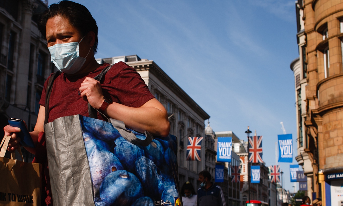 A shopper wearing a face mask walks along Oxford Street in London, England, on June 23. Photo: AFP