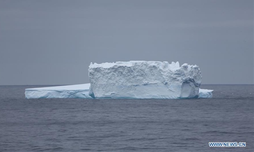 Photo taken on Jan. 27, 2020 from China's polar icebreaker Xuelong 2, or Snow Dragon 2, shows iceberg in the southern Atlantic ocean westerlies. China's 36th Antarctic expedition team put two buoys into the ocean to acquire scientific data at 55.26 degrees south latitude and 17.56 east longitude. (Xinhua/Liu Shiping)