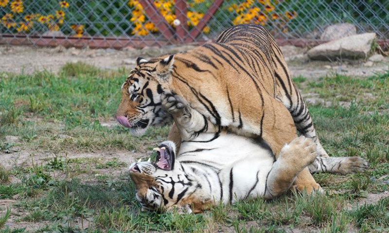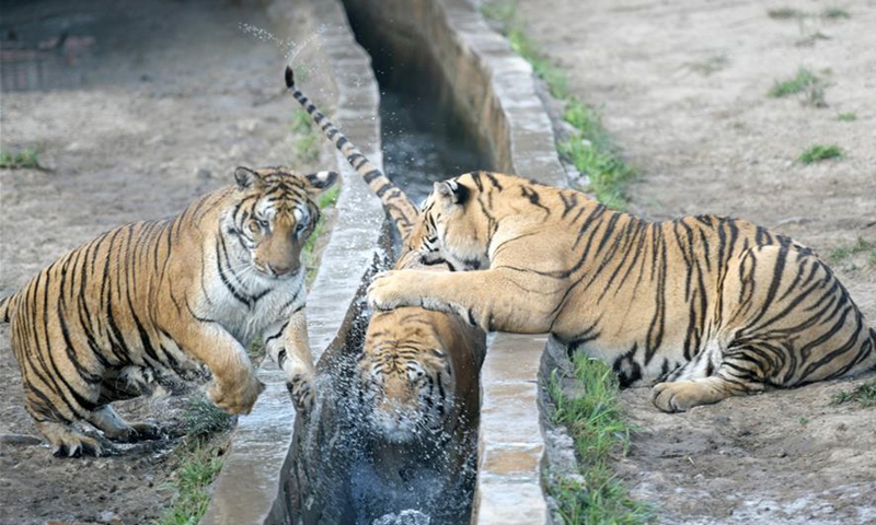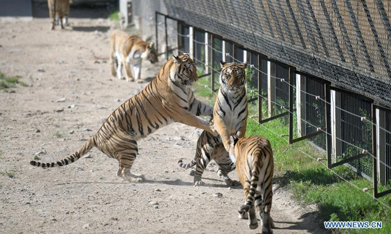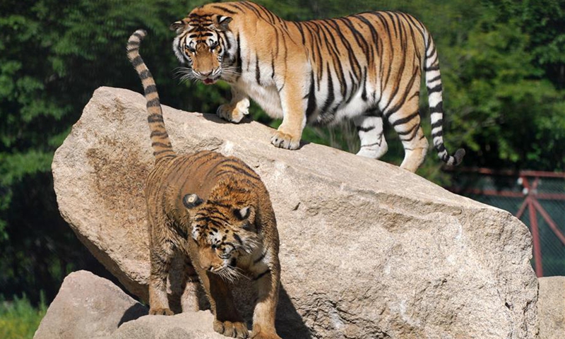Siberian tigers are seen at Hengdaohezi Siberian tiger park in Hailin City, northeast China's Heilongjiang Province, July 27, 2020. There are now over 400 Siberian tigers at the park. July 29 marks the International Tiger Day. Photo:Xinhua