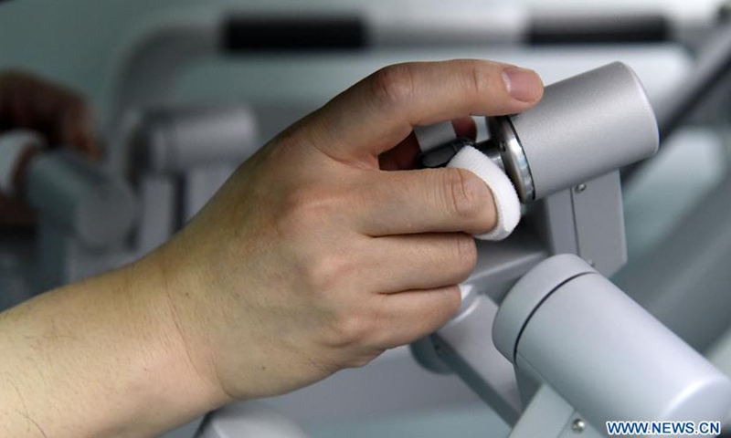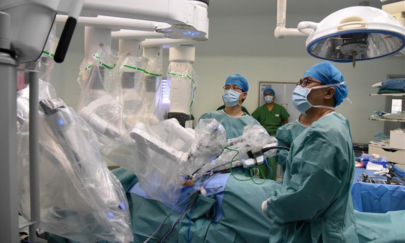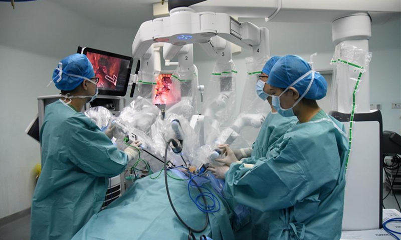 Doctors use the Da Vinci system during a surgery at the Qilu Hospital of Shandong University in Jinan, east China's Shandong Province, July 27, 2020. A Da Vinci surgical robotic system is put in use in the Qilu Hospital of Shandong University. The system is characterized by less trauma and more accurate treatment.Photo:Xinhua
