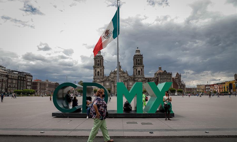 People are seen wearing masks in Mexico City, Mexico, July 28, 2020. Mexico registered 7,208 new COVID-19 cases, bringing the nationwide count to 402,697 cases, the health ministry said Tuesday. (Str/Xinhua)