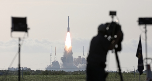 An Atlas V rocket with the Perseverance rover lifts off from Cape Canaveral Air Force Station in Florida on Thursday. The Perseverance rover will seek signs of ancient life on Mars and collect rock and soil samples for possible return to the Earth. The Atlas V is one of the largest rockets available for interplanetary flight. Photo: AFP