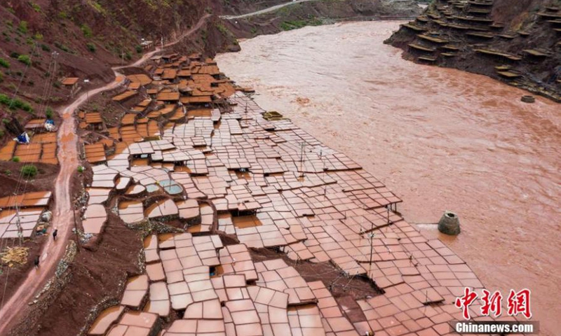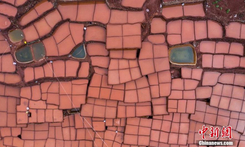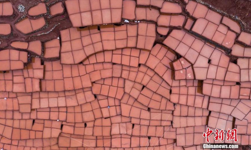 Aerial photo shows saline fields in Mangkam County, southwest China's Tibet Autonomous Region. An ancient technique of salt production since Tang Dynasty (618-907) is well-preserved in Mangkam County. Local people follow a salt harvesting method by collecting brines from salt mines and ponds and evaporating them in the sun until crystallization. Now, more than 320 households are engaged in salt production, which has became an important economic income for villagers.Photo:China News Service