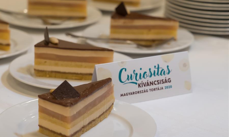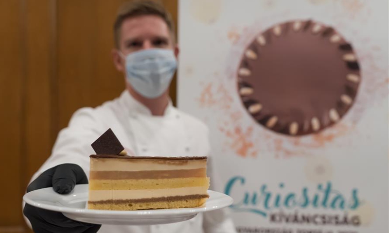Cake of Hungary 2020 Curiositas is seen after the announcement at a press conference in the Parliament in Budapest, Hungary on Aug. 4, 2020. (Photo by Attila Volgyi/Xinhua)