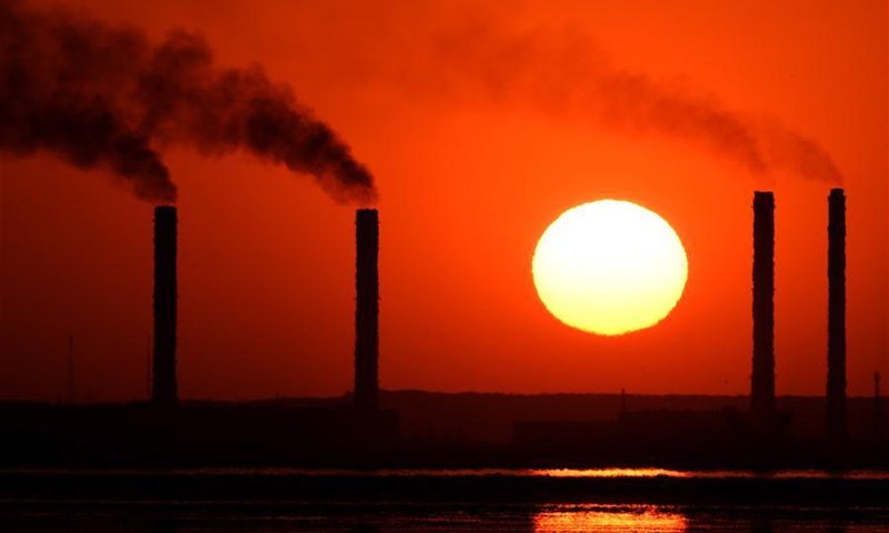 Photo taken on Aug. 4, 2020 shows the sunset view in Kuwait City, Kuwait. (Photo by Ghazy Qaffaf/Xinhua)