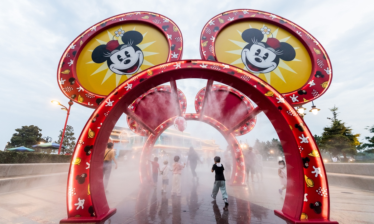 Little tourists try interesting devices at the night market, which lasts for two months at Disney Town, Shanghai, China, on July 18, 2020. Photo: IC