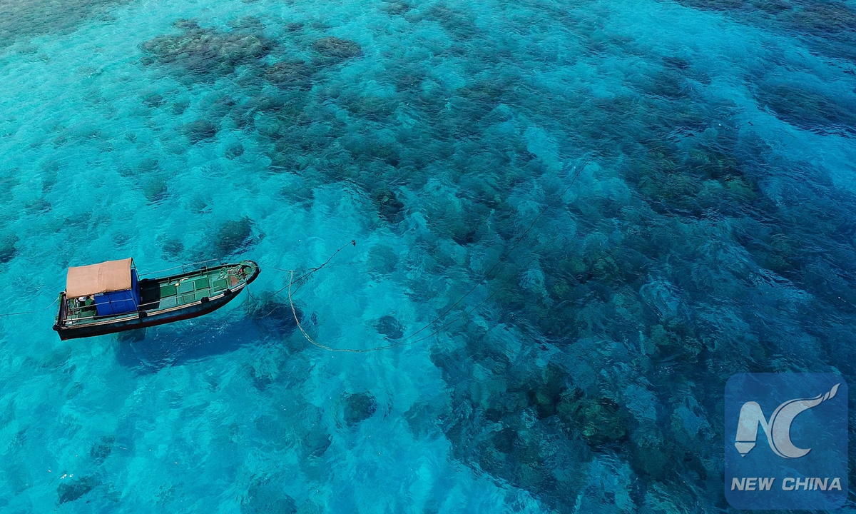 A boat sails near the Ganquan Island of Xisha Yongle Islands in South China Sea. Photo: Xinhua
