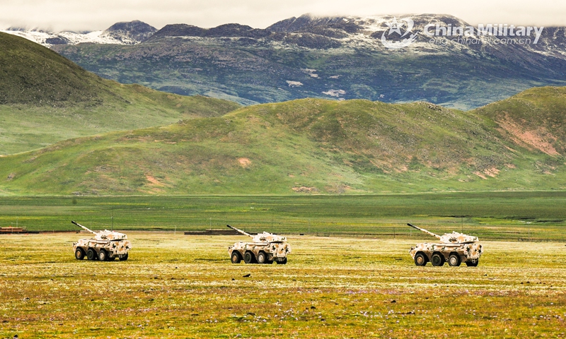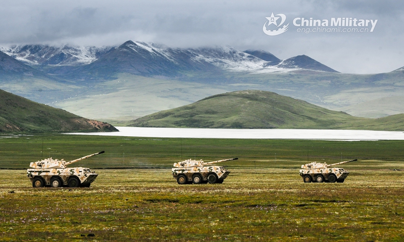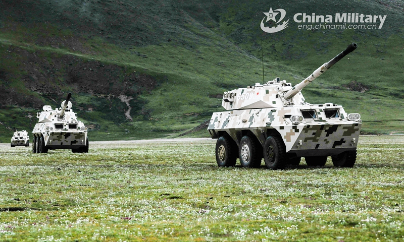 A group of wheeled self-propelled assault guns attached to a brigade under the PLA 77th Group Army is en route to a designated training field at the elevation of 4, 500 meters in late July, 2020.Photo:China Military