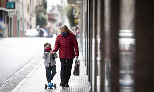 People wearing face masks walk on a street in Buenos Aries, Argentina, on July 12, 2020. (Photo by Martin Zabala/Xinhua)