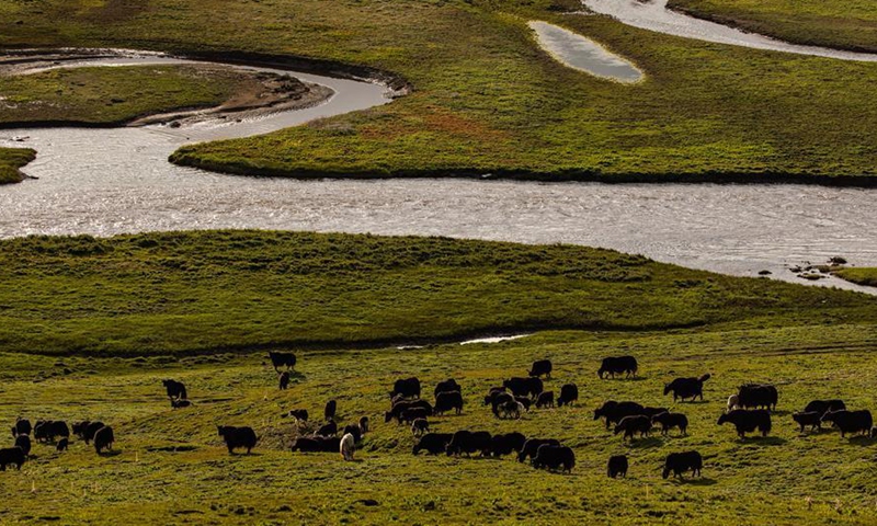 Photo taken on Aug. 9, 2020 shows the view of Nilaba wetland in Sertar County, southwest China's Sichuan Province. (Xinhua/Jiang Hongjing)