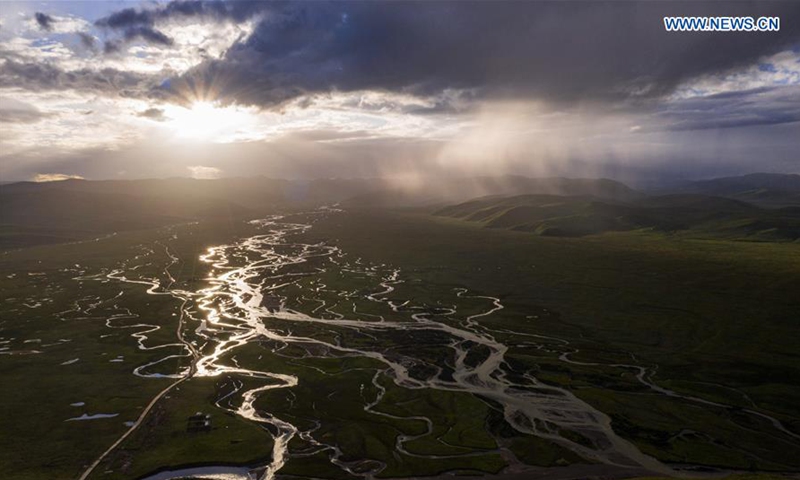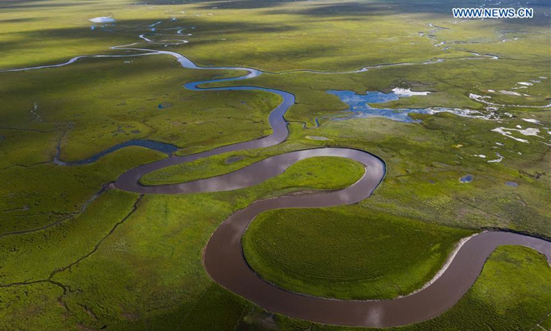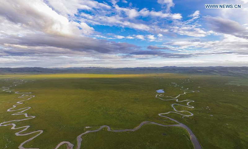 Aerial photo taken on Aug. 9, 2020 shows the view of Nilaba wetland in Sertar County, southwest China's Sichuan Province. (Xinhua/Jiang Hongjing)