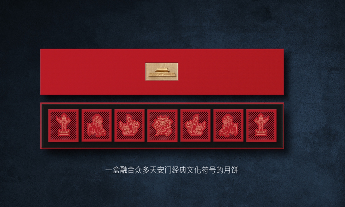 Since this year's Mid-Autumn Festival falls on October 1, China's National Day, the gift box is red, an auspicious color in China, to hint at the double holiday happiness. The exquisite gift box, which sports the phrase "I love Tiananmen" and costs 350 yuan ($ 50.34), contains seven mooncakes. Seven represents prosperity in Chinese culture.