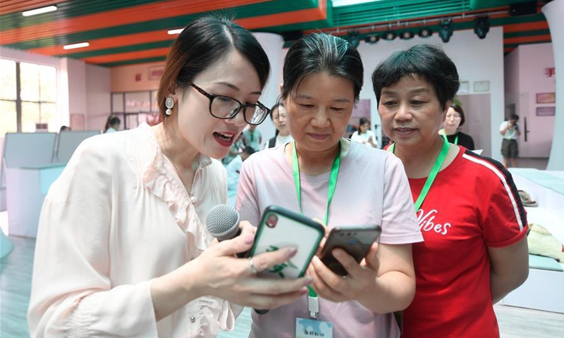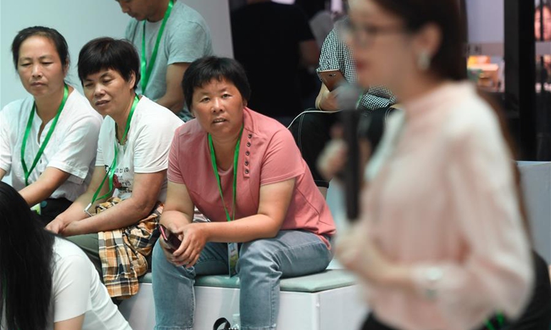 Villagers take livestreaming class at the Village Livestreaming College in Wantian Township in Quzhou City, east China's Zhejiang Province, July 18, 2020. More than 1,000 local villagers have learned livestreaming at the Village Livestreaming College set up in Wantian Township by China's e-commerce giant Alibaba since its founding in April this year. (Xinhua/Huang Zongzhi)
