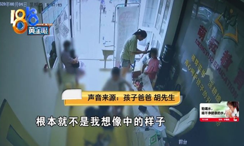 A teacher at a training school in Shaoxing, East China's Zhejiang Province, cut a student's hair which has bubble gum stuck in it. Photo: Screenshot of a video posted on Sina Weibo