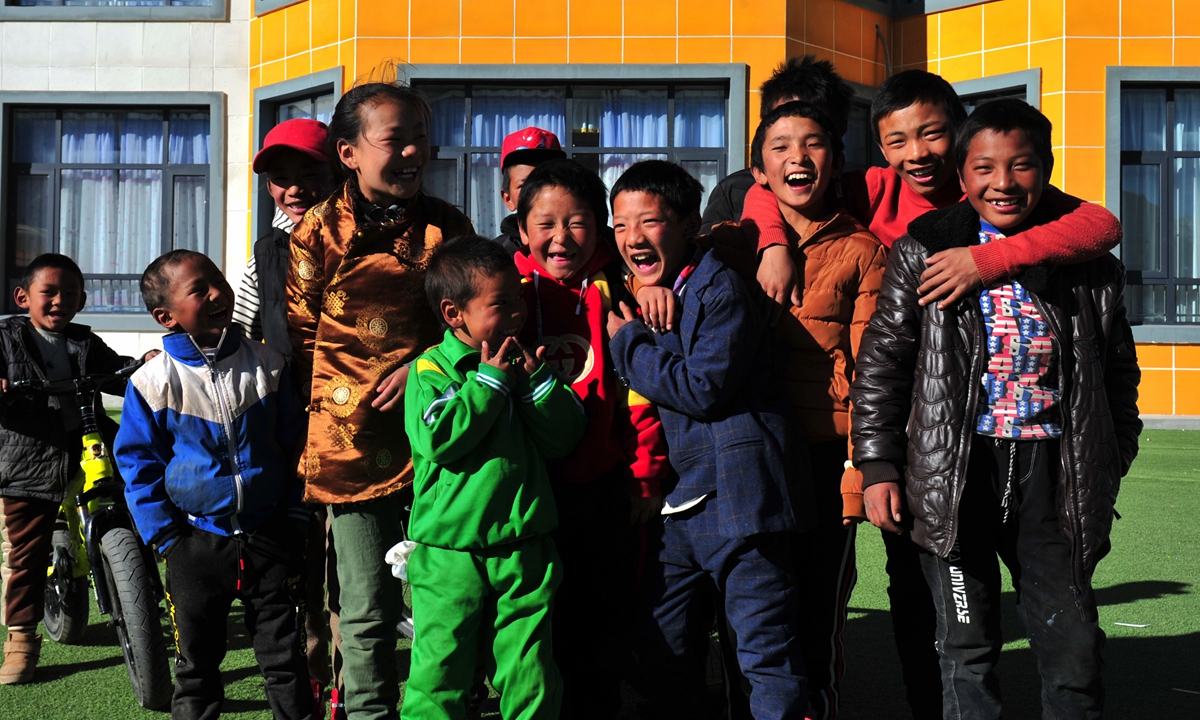 Children play in a kindergarten at the Rongma ecological relocation demonstration site, 40 kilometers from Lhasa. Photo: cnsphoto