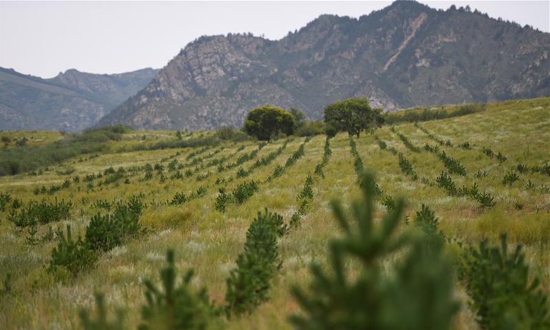 Photo taken on Aug. 12, 2020 shows a forest plantation near the Xar Moron River in Hexigten Banner, north China's Inner Mongolia Autonomous Region. (Xinhua/Liu Lei)