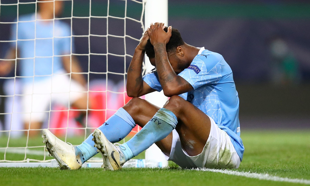 Manchester City's Raheem Sterling reacts after missing a golden scoring chance. Photo: VCG