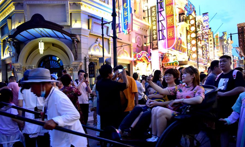 People visit the Jianye & H·Brothers Movie Town in Zhengzhou, north China's Henan Province, Aug. 15, 2020. (Xinhua/Zhu Xiang)