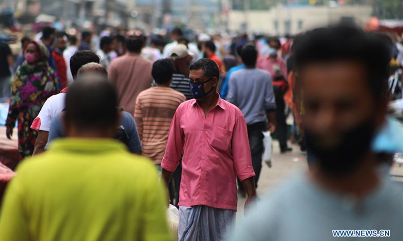 A man wearing a face mask is seen at a makeshift market in Dhaka, Bangladesh, on April 30, 2020. Photo: Xinhua