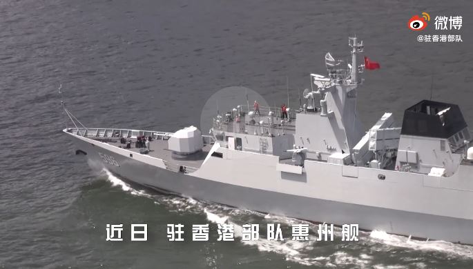 The Hong Kong Garrison of the Chinese People's Liberation Army (PLA) on Sunday posted a video clip on social media showing their Type 056 Huizhou corvette carried out multi-subject maritime military drills in the South China Sea.