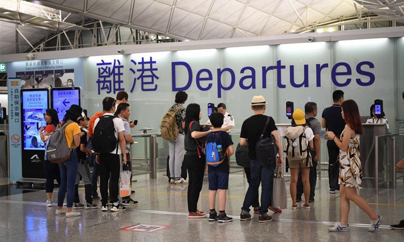 Photo taken on Aug. 15, 2019 shows travellers at Hong Kong International Airport in Hong Kong, south China. Photo: Xinhua