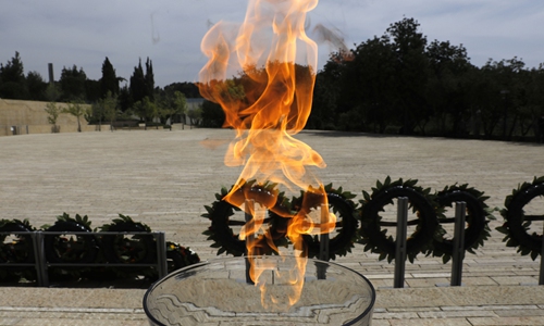 A photo taken on Tuesday shows a flame in memory of Jewish Holocaust victims during a ceremony without participants due to the COVID-19 pandemic, marking the Holocaust Remembrance Day, at the Yad Vashem Holocaust memorial in Jerusalem. Photo: AFP