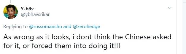"It's a local custom in the area. If he had refused, the ambassador would have insulted the locals. Accepting means ending up with pictures like this," said El Zorro, a Twitter user, adding that "[I am] not a fan of China at all, but I wouldn't know what the best approach would be in this situation."