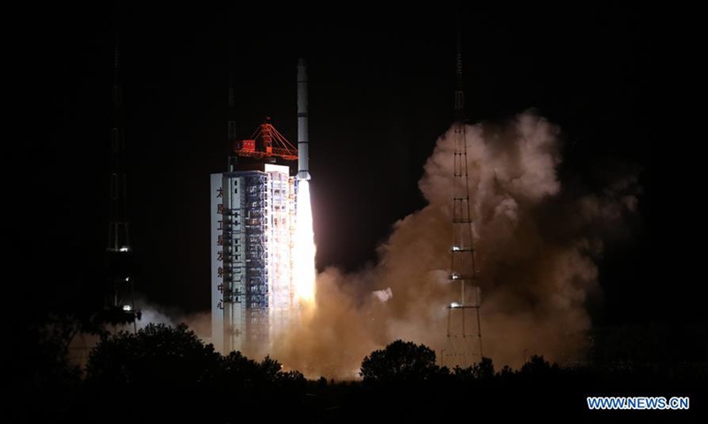 A Long March-2C rocket, carrying the satellite HY-1D, is launched from the Taiyuan Satellite Launch Center, north China's Shanxi Province, June 11, 2020. China successfully sent an ocean observation satellite into orbit on Thursday. The new satellite will form China's first satellite constellation for marine civil service together with HY-1C, which was launched in September 2018. Photo: Xinhua