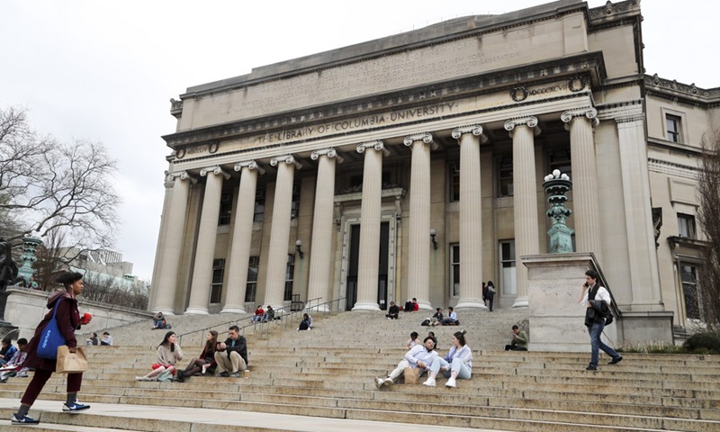 Students enjoy daytime outdoors on the campus of Columbia University, New York, the United States, March 10, 2020. (Xinhua/Wang Ying)