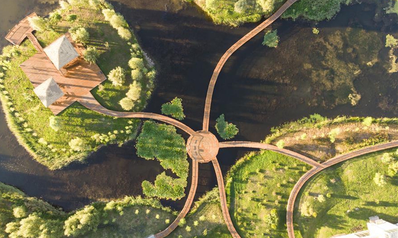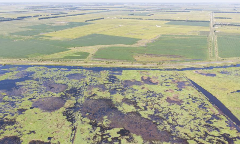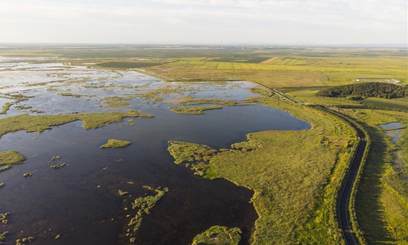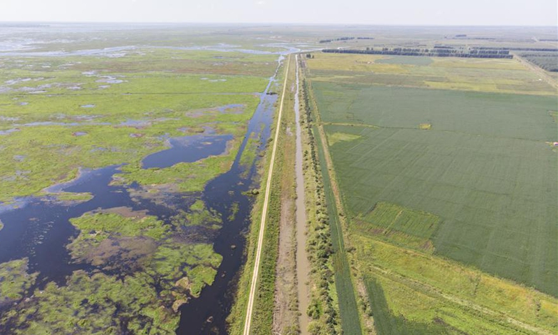 Aerial photo taken on Aug. 20, 2020 shows the scenery of the Fujin National Wetland Park in Fujin, northeast China's Heilongjiang Province. (Xinhua/Zhang Tao)